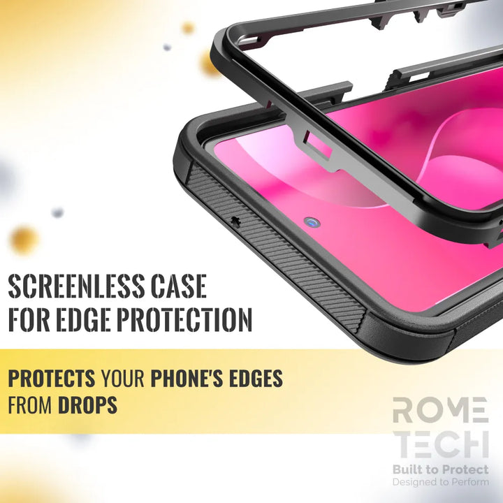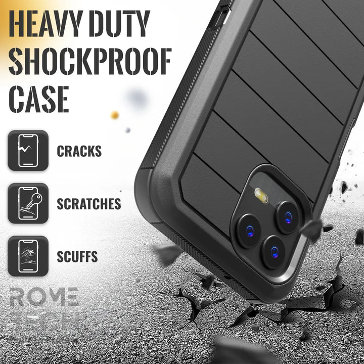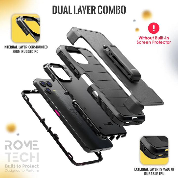 Protective Cases for T-Mobile REVVL 8 Pro a is four layers of 360-degree heavy-duty shockproof protection. Our defender case is made out of durable materials with a hard polycarbonate inner shell and soft outer rubber layer. Raised beveled edge keeps your touchscreen safe from scratches. A 360-degree swivel belt clip also functions as a kickstand with different viewing angles perfect for video calls and media playback. Defender case also have easy access to the charging port, buttons, sensors, and camera. Built-in port covers offer protection from dust, dirt, and other elements, making it ideal for commercial use. Rome Tech's Defender case multi-layer design offers rugged drop protection ideal for outdoor adventures, sports, hiking and guards your device against scrapes, bumps, dirt, and dust.